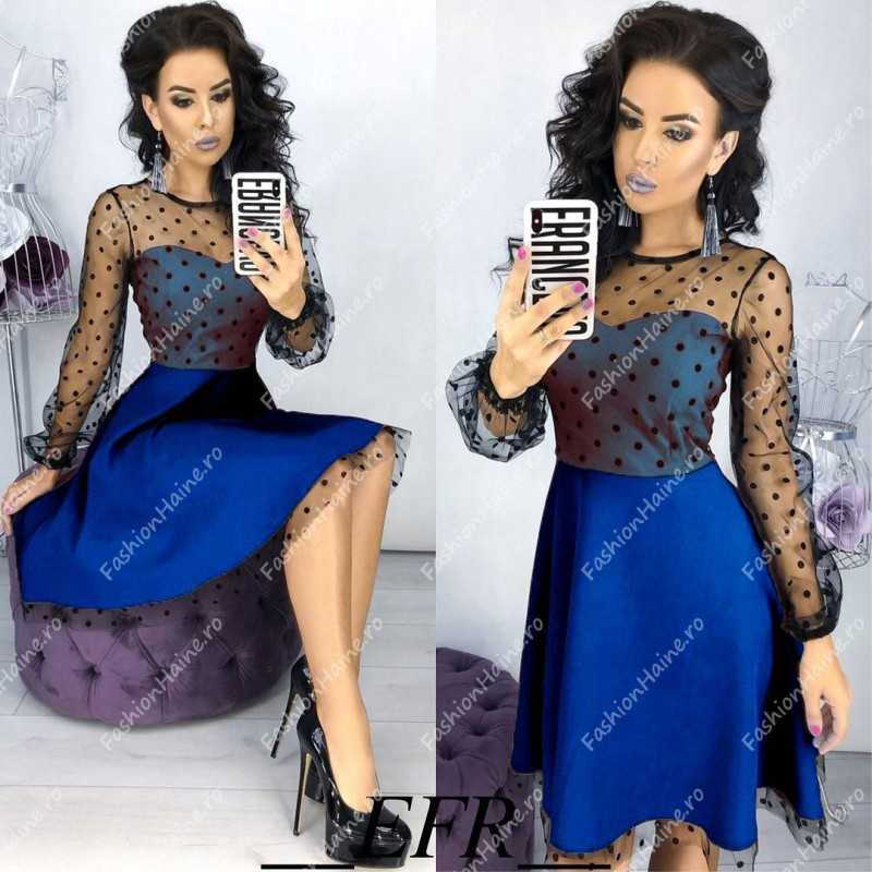 Rochia Olympia este un model elegant și rafinat, ideal pentru evenimente speciale și petreceri sofisticate! Designul modern îmbină croiul cloș cu mâneci și decolteu din tull transparent cu buline, oferind un aer feminin și sofisticat. Bustul tip corset evidențiază silueta, iar fusta lejeră conferă un plus de confort și grație. Această rochie este alegerea perfectă pentru un look de impact!