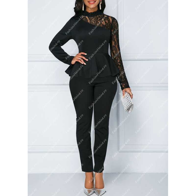 Dacă vrei să impresionezi cu o ținută sofisticată și modernă, Setul Jamy este alegerea perfectă! Designul său rafinat include o bluză peplum cu detalii din dantelă și pantaloni conici, perfecte pentru un look feminin și sofisticat.
