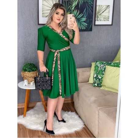 Dă un refresh garderobei tale cu această rochie elegantă , perfectă pentru orice ocazie specială sau ieșire în oraș. Croiul lejer în stil cloș avantajează orice siluetă, iar detaliile animal print pe decolteu, talie și cordon adaugă un plus de rafinament.